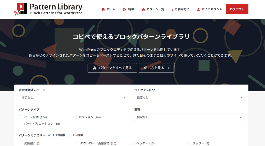 言葉で説明するよりも、どんなパターンを使ってHPを構成できるのか見てもらった方が早いと思いますので、「VK Pattern Library(パターンライブラリ)」をご覧ください。